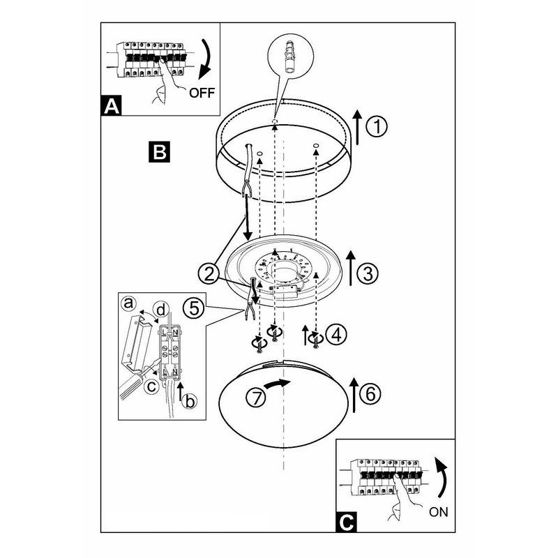Prix Spécial 129,- PVC : Prix normal 139,-5-8 jours ouvrés Plafonnier blanc en métal, Abano- D: 76 cm, H: 15 cm