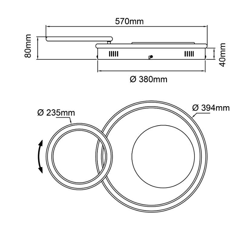 Lampe plafond noire moderne, Asude, 12W, 3000K LED- D: 33 cm, H: 6,5 cm