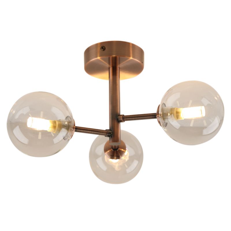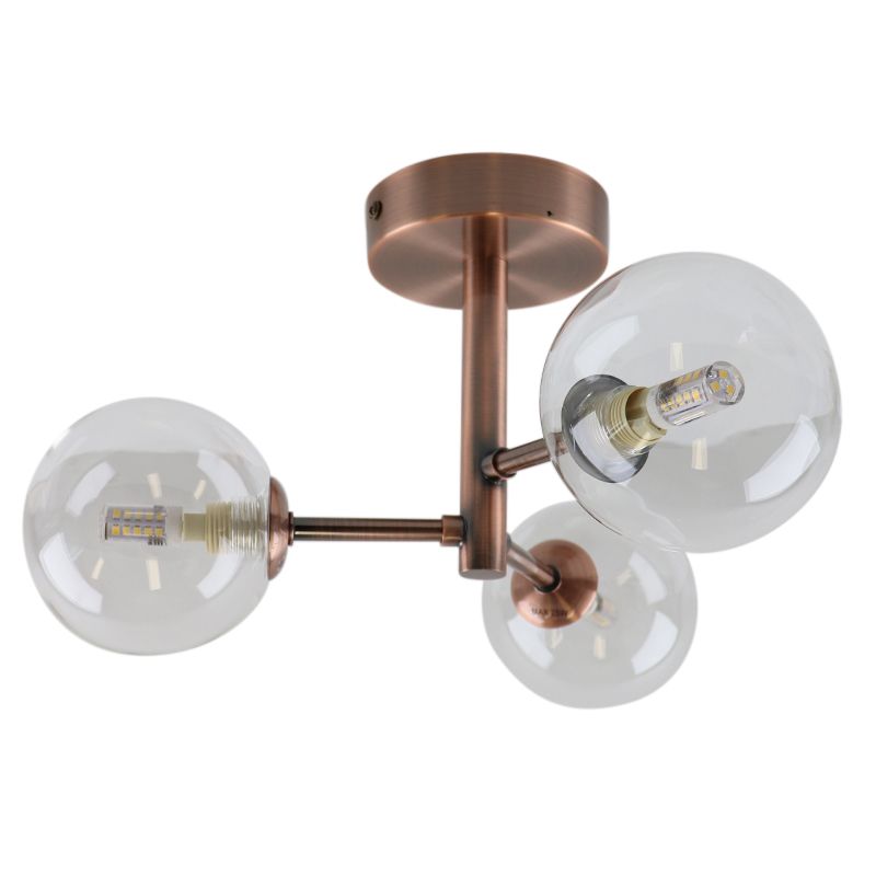 Le plafonnier moderne en acier Amer est de couleur cuivre. Le plafonnier cuivre est fournie sans sources lumineuses correspondantes. Cette lampe doit contenir 3 sources lumineuses avec raccords G9. La puissance maximale des sources lumineuses ne doit pas dépasser 25 watts par ampoule.