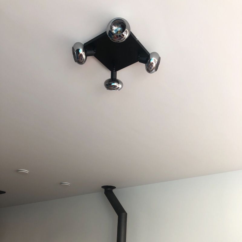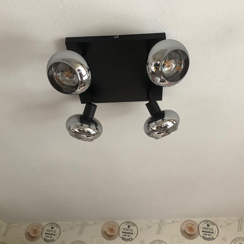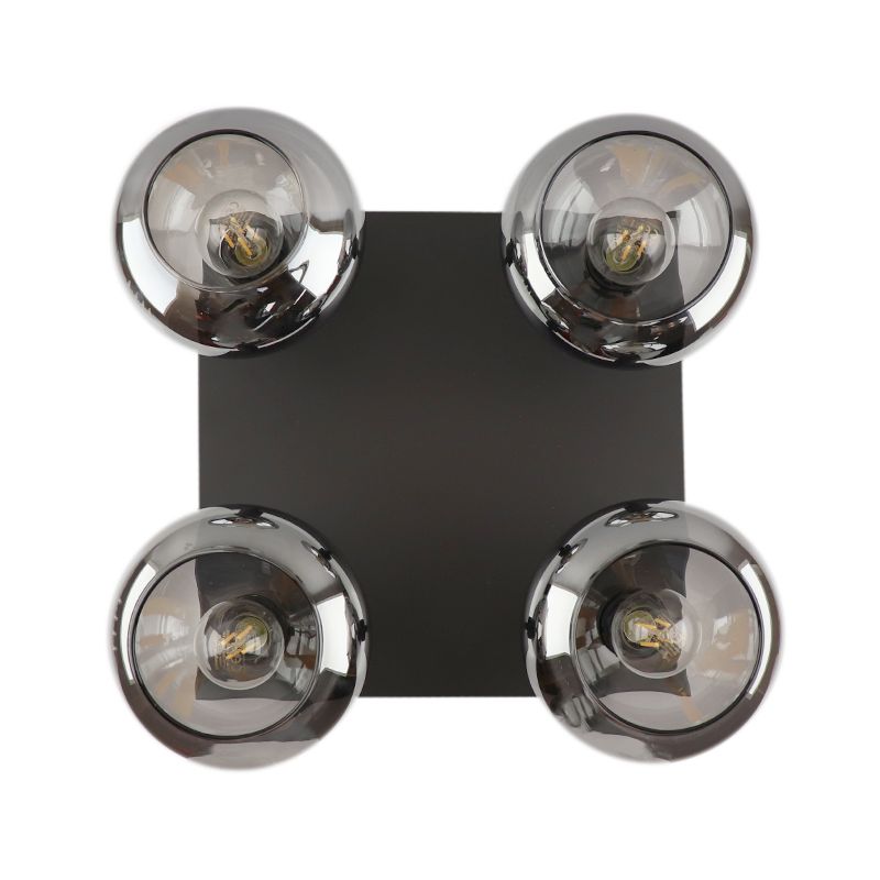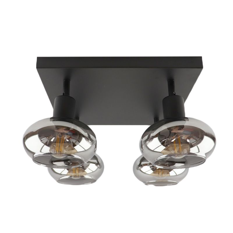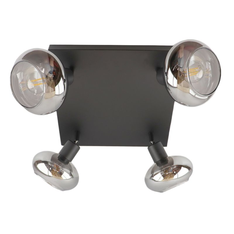 Le spot plafond design en verre Skip est de couleur noire. Le spot plafond noir est fournie sans sources lumineuses correspondantes. Cette lampe doit contenir 4 sources lumineuses avec raccords E14. La puissance maximale des sources lumineuses ne doit pas dépasser 20 watts par ampoule.
