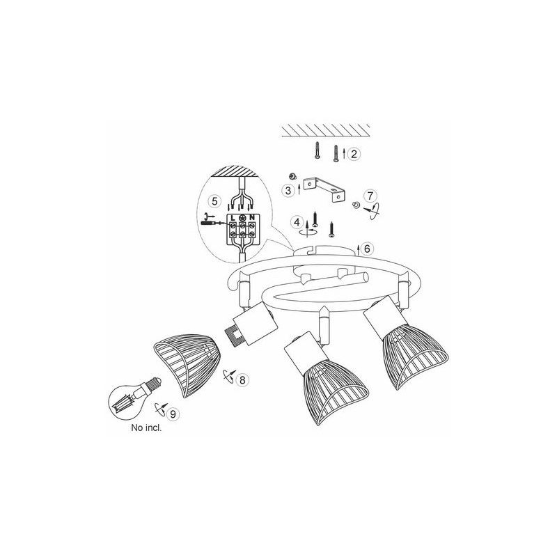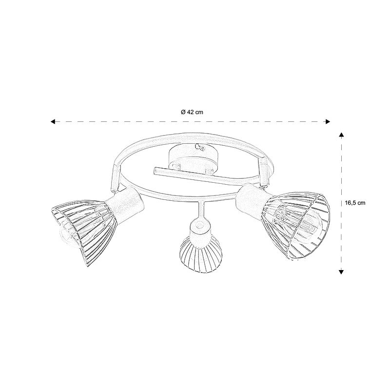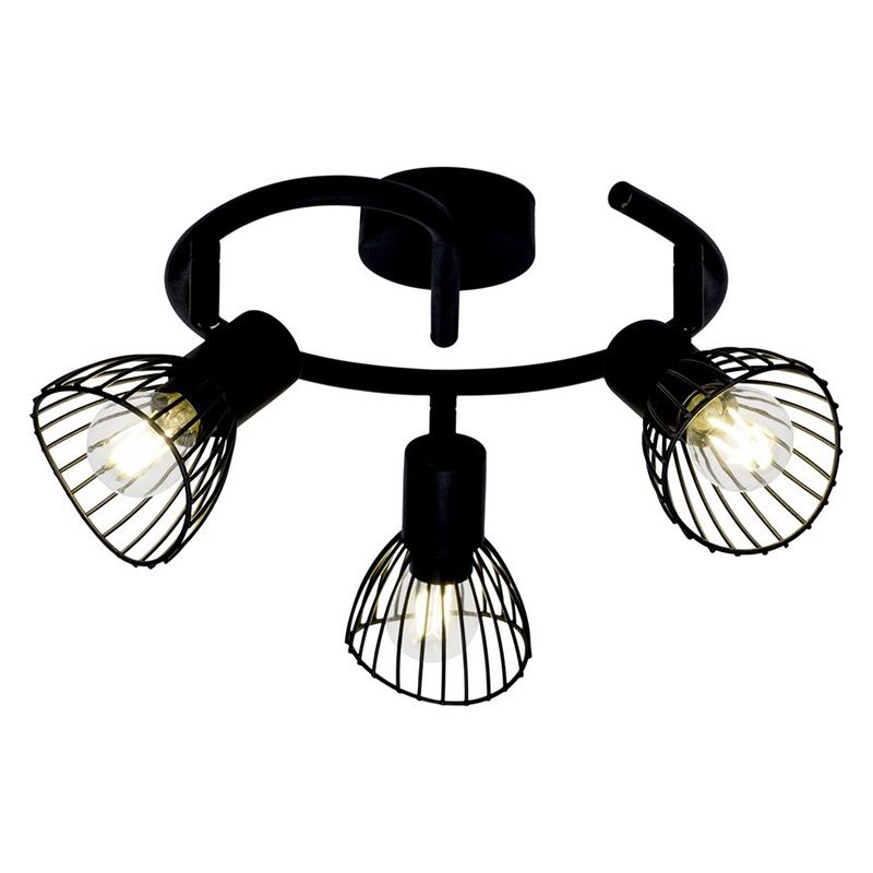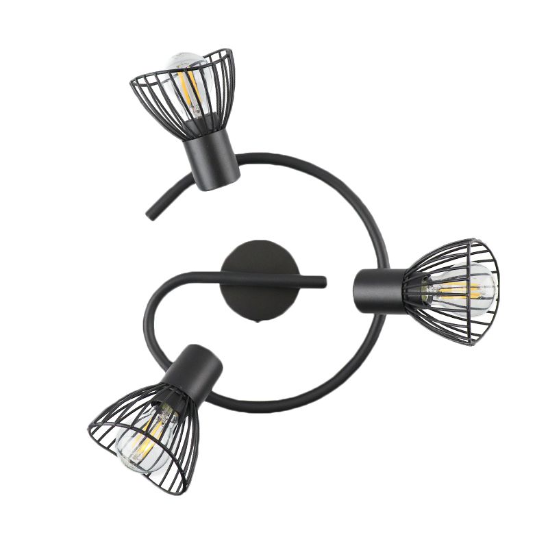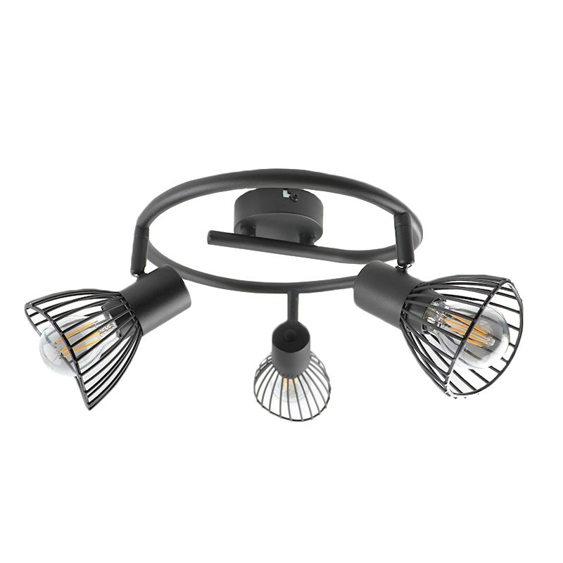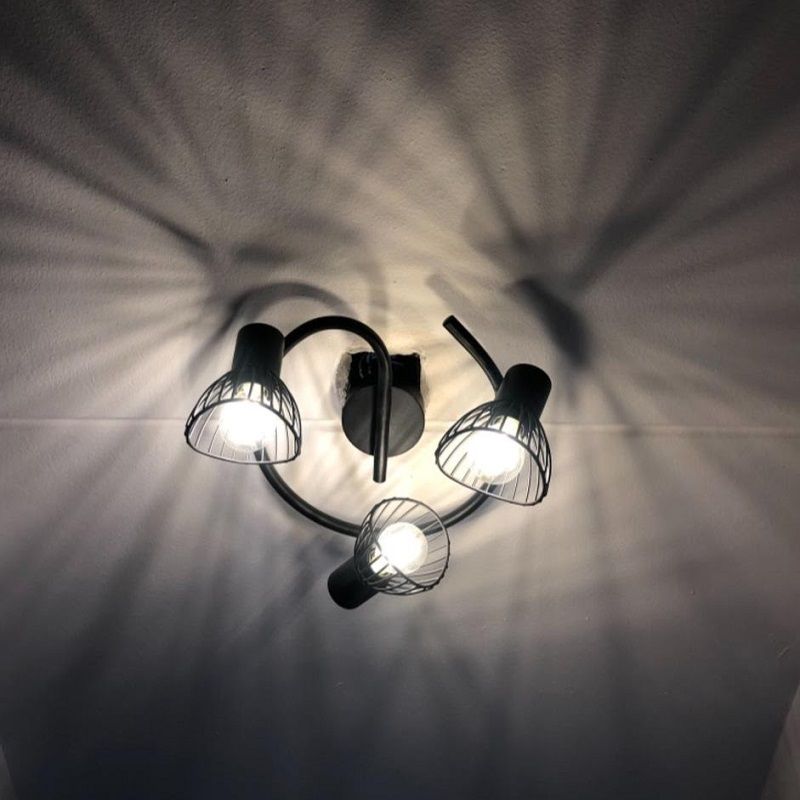 Le spot plafond industriel en métal Aina est de couleur noire. Le spot plafond noir est fournie sans sources lumineuses correspondantes. Cette lampe doit contenir 3 sources lumineuses avec raccords E14. La puissance maximale des sources lumineuses ne doit pas dépasser 40 watts par ampoule.