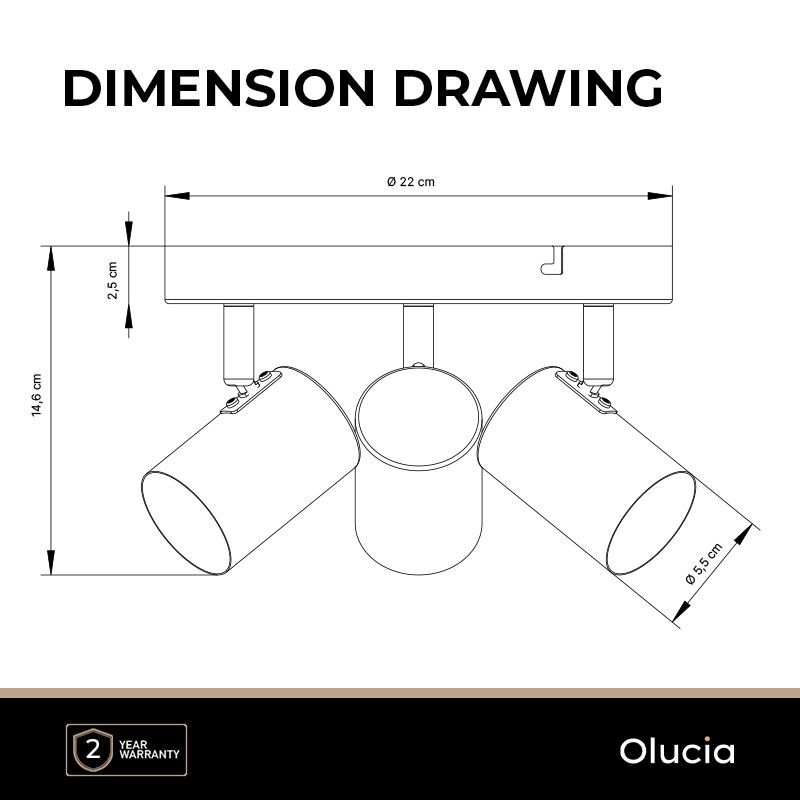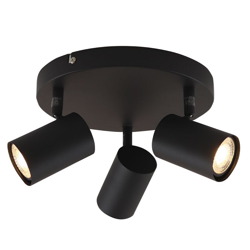 Le spot plafond moderne en métal Elena est de couleur noire. Le spot plafond noir est fournie sans sources lumineuses correspondantes. Cette lampe doit contenir 3 sources lumineuses avec raccords GU10. La puissance maximale des sources lumineuses ne doit pas dépasser 35 watts par ampoule.