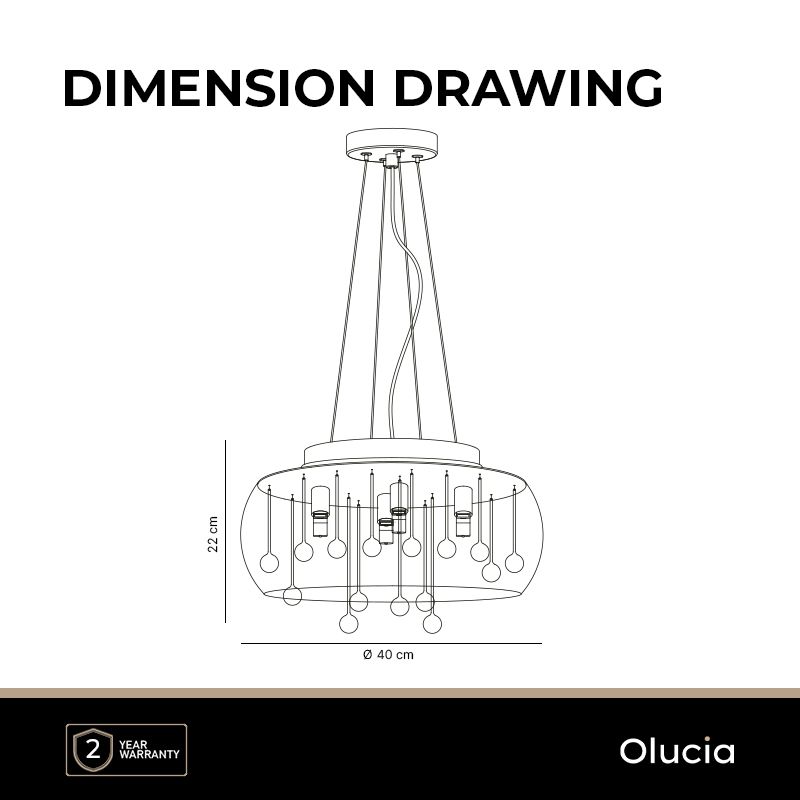 La suspension design en verre Lorenzo est de couleur ambre. La suspension ambre est fournie sans sources lumineuses correspondantes. Cette lampe doit contenir 4 sources lumineuses avec raccords G9. La puissance maximale des sources lumineuses ne doit pas dépasser 3 watts par ampoule.