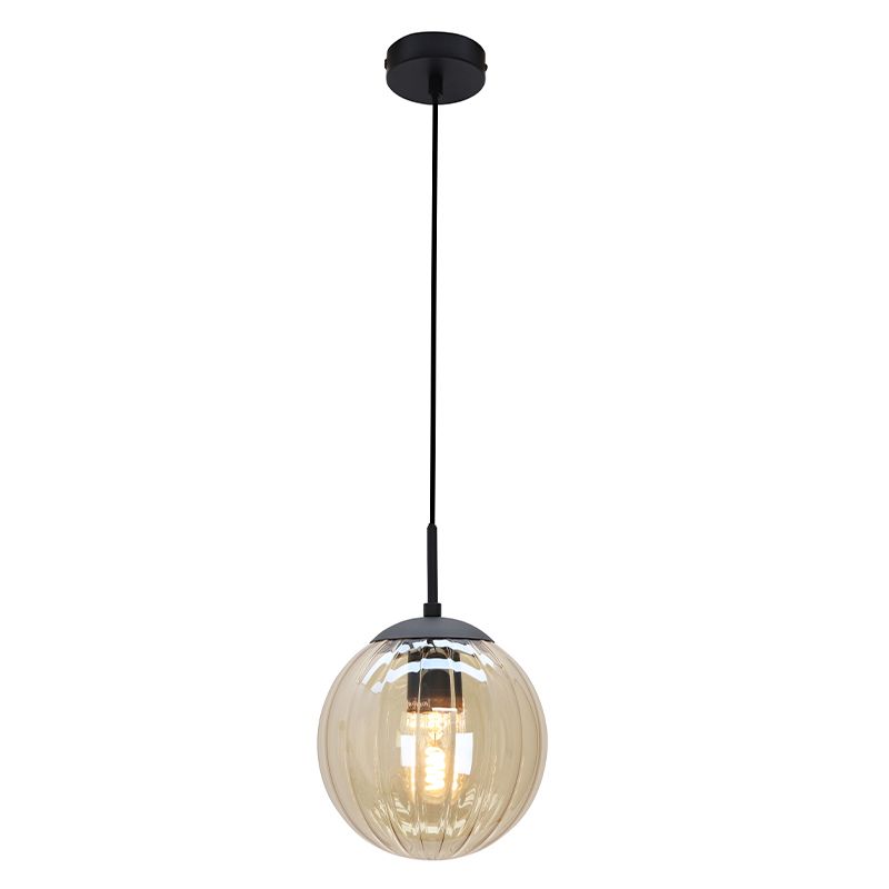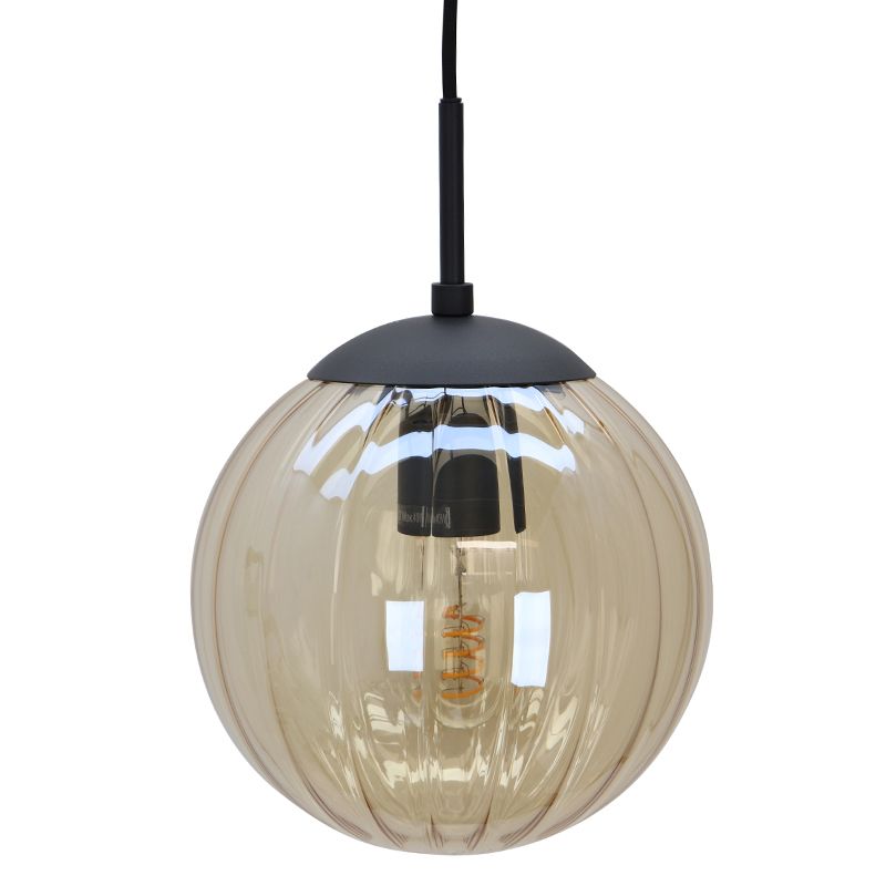 La suspension rétro en verre Rifka est de couleur ambre. La suspension ambre est fournie sans source lumineuse correspondante. Dans cette lampe, une source lumineuse avec un raccord E27 et la puissance maximale de la source lumineuse ne doit pas dépasser 40 watts.