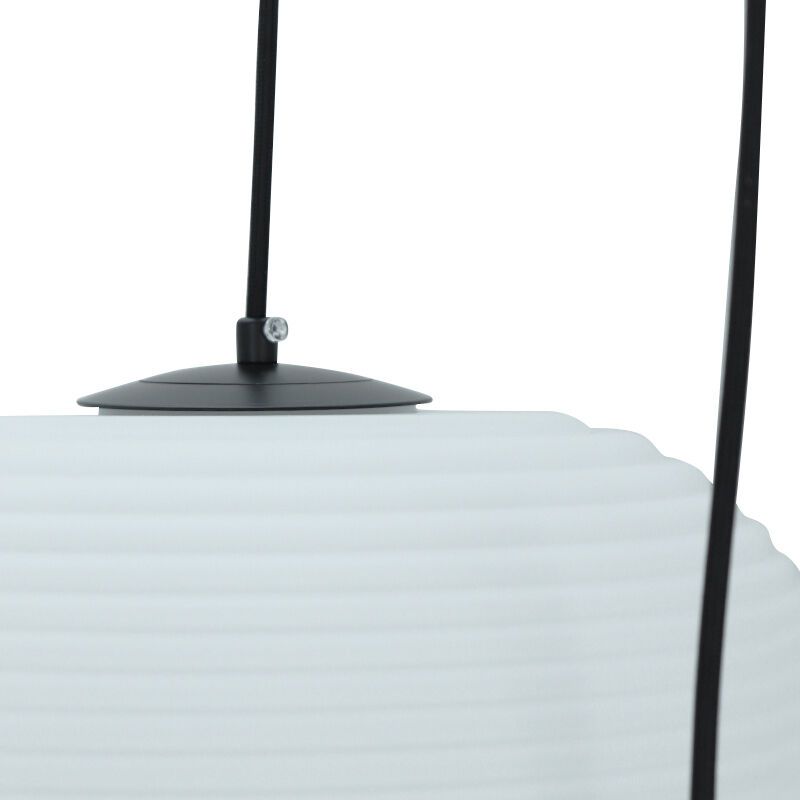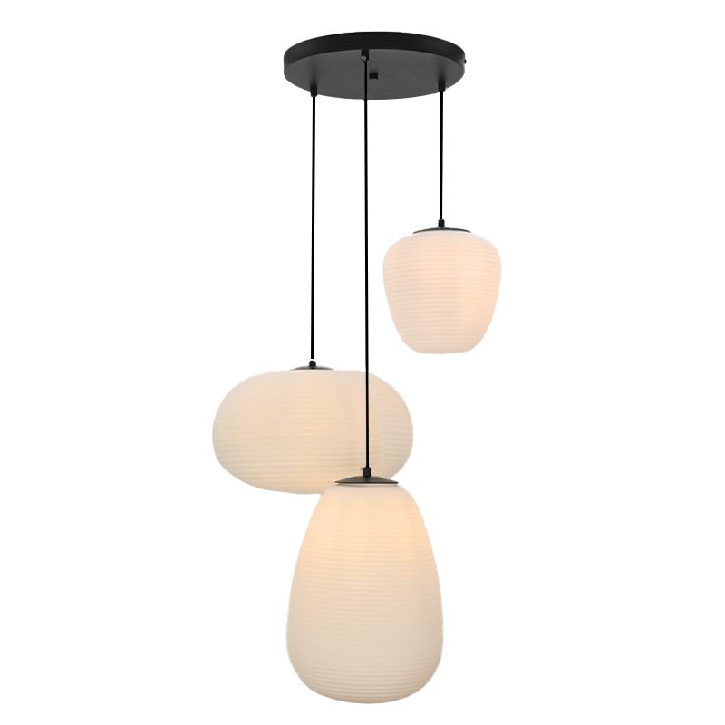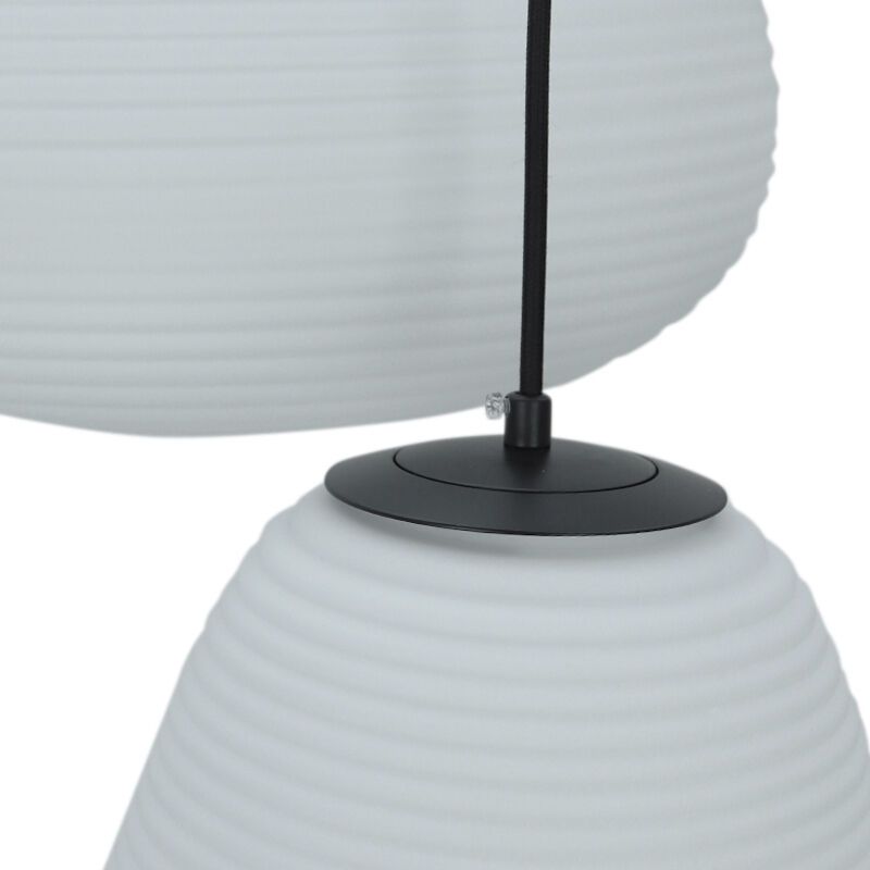 La suspension moderne en verre Davide est de couleur blanche. La suspension blanche est fournie sans sources lumineuses correspondantes. Cette lampe doit contenir 3 sources lumineuses avec raccords E27. La puissance maximale des sources lumineuses ne doit pas dépasser 40 watts par ampoule.