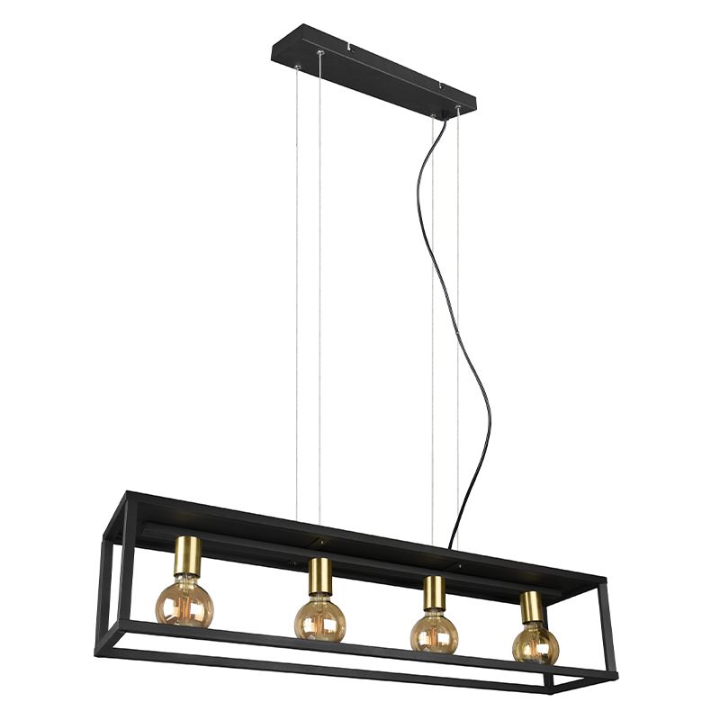 La suspension noire Fabrice a un style moderne et est en métal. Cette suspension noire a 4 raccords E27 et est exclusive de 4 sources lumineuses correspondantes. La lampe peut accueillir des sources lumineuses d'une puissance maximale de 10 watts par ampoule.