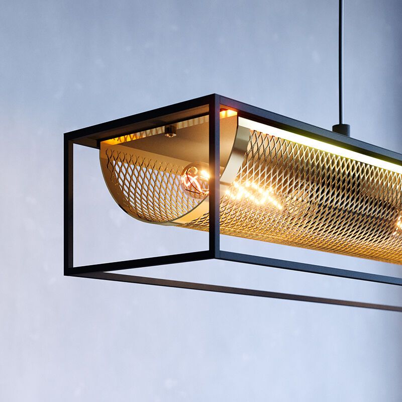 Information produit Puissance maximale 40 Tension d'alimentation 220-240V Nombre de lumières 4 Type culot E27 Information produit Ampoule incluse Non Largeur en cm 17 Poids en kilogrammes 5.045 Hauteur en cm 150 Longueur en cm 112 Dimmable Oui (non inclus) Garantie 2 ans Valeur IP IP20 (anti-poussière) Couleur Or, Noir Matériel Aluminium Style Industriel Numéro de l'article Q52066 - Accueil