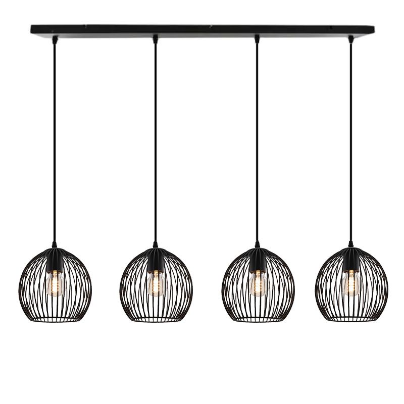La suspension industrielle en métal Wiro est de couleur noire. La suspension noire est fournie sans sources lumineuses correspondantes. Cette lampe doit contenir 4 sources lumineuses avec raccords E27. La puissance maximale des sources lumineuses ne doit pas dépasser 60 watts par ampoule.