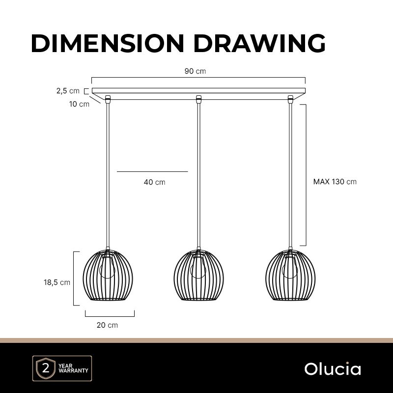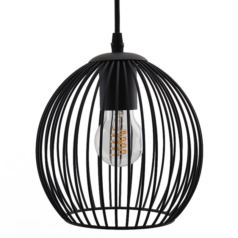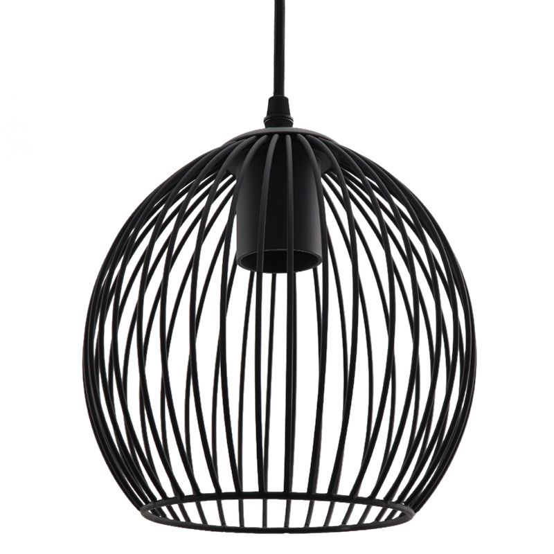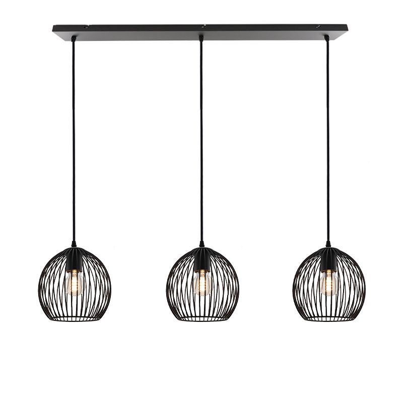 La suspension industrielle en métal Wiro est de couleur noire. La suspension noire est fournie sans sources lumineuses correspondantes. Cette lampe doit contenir 3 sources lumineuses avec raccords E27. La puissance maximale des sources lumineuses ne doit pas dépasser 60 watts par ampoule.
