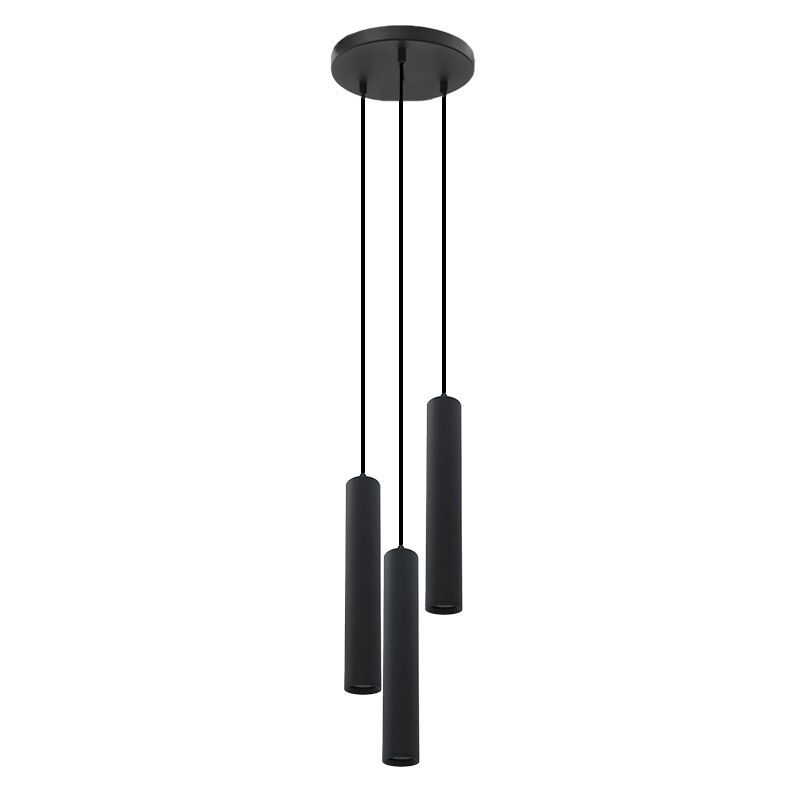 La suspension moderne en métal Nadi est de couleur noire. La suspension noire est fournie sans sources lumineuses correspondantes. Cette lampe doit contenir 3 sources lumineuses avec raccords GU10. La puissance maximale des sources lumineuses ne doit pas dépasser 35 watts par ampoule.