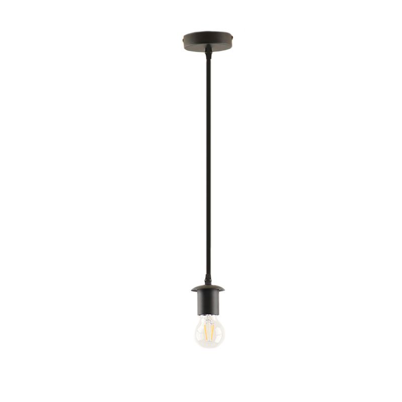 La suspension sans abat-jour moderne en métal Rika est de couleur noire. La suspension sans abat-jour noire est fournie sans source lumineuse correspondante. Dans cette lampe, une source lumineuse avec un raccord E27 et la puissance maximale de la source lumineuse ne doit pas dépasser 60 watts.